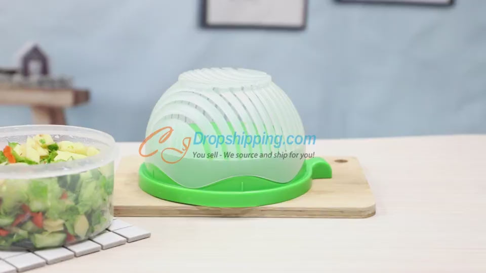Our salad cutter bowl has a completely new design that makes it easier to accurately rotate the top cover by 90°and secure it to the base.
